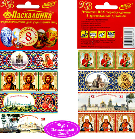 Здавалося б, навіщо така велика кількість "святості" і "православ'я" в наклейках. Адже ми ж не іконостас збираємо, а всього лише хочемо яйця святити! Відповідь знаходимо тут же, на сайті магазина, на сторінці з рекламою серії наклейок під назвою "Свята Русь": "Великодні дні ми знову і знову звертаємо погляд до витоків православ'я. Тут наше духовне начало, джерело віри і натхнення. Термоплівка, термоетікетка легка в застосуванні, що не складе Вам великих труднощів прикрасити великодні яйця напередодні Світлого свята Пасхи "(орфографія і синтаксис оригіналу).