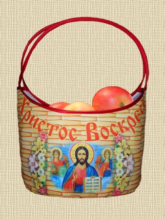 Яйця і паски треба якось донести до храму. Немає проблем. Ось вам корзинка, причому абсолютно православна. Чи не сплутаєш ні з католицької, ні з протестантської, ні тим більше з сумками всяких нехрещених. Гарантія ортодоксальності - ікона Спасителя. Товар називається нехитро: "Кошик великодня ХВ-ікони". "Священність" продуктів крім наклейок додатково забезпечується за допомогою "ХВ-ікон" на "посудині".