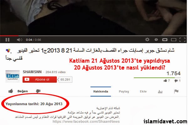 Мабуть, тут мова йде про різні повідомленнях про те, що деякі відео, опубліковані 21 серпня, з'явилися з датою 20 серпня. Такі повідомлення з'явилися на різних сайтах, згодом їх передрукували сайти Russia Today і « Голос Росії ». Зображення нижче, опубліковане «Islamic Invitation Turkey», було використано «Голосом Росії» (нині Sputnik):