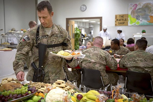 Меню в солдатських їдальнях вкрай різноманітно, і пояснюється це не турботою про смаки військовослужбовців. В рядах американських ЗС можна зустріти солдатів практично будь-якого віросповідання, кольору шкіри, а кухарі зобов'язані пропонувати халяльную, кошерну або вегетаріанську їжу. При чому, включення подібних вишукувань гастрономів необхідно робити, якщо чисельність, хто її потребує становить 10 відсотків від загального числа столу.