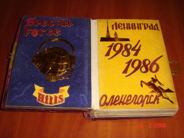 А це пишність перших розворотів. Військовий округ, номер частини, роки служби і міста - неодмінні атрибути ТАК. Ордена, видавлені з листової міді та латуні і відполіровані до блиску. Процес тоскний і досить трудомісткий, але результат вражає. Special Forces - ОСНАЗ, частина особливого призначення (радіорозвідка), Hills - Горби, місцевість у Виборзькому районі міста-героя Ленінграда, де ця сама частина дислокувалася.