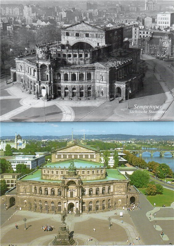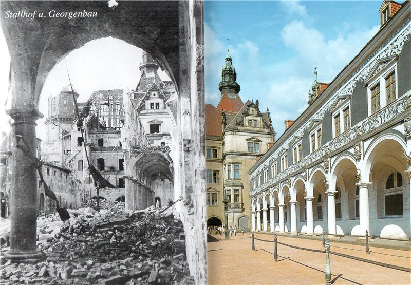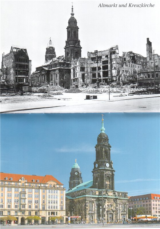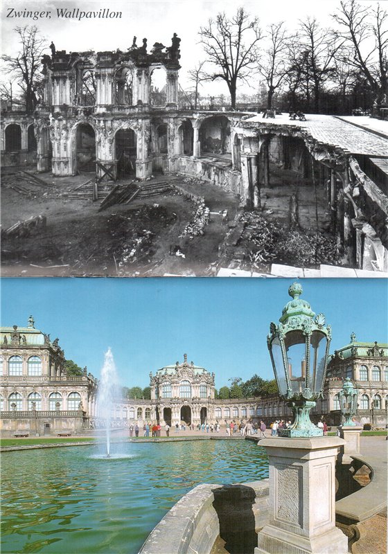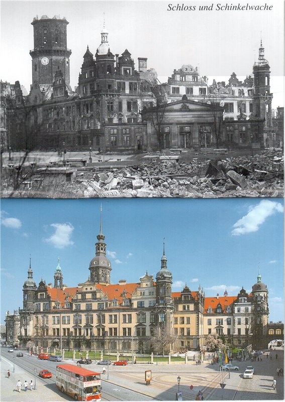 Я не буду зосереджувати увагу на описі жахів бомбардування Дрездена, мене цікавить два аспекти: дивовижне чудо відродження міста і той факт, що в цьому процесі брали участь не тільки німці, але і представники інших країн, в тій війні - ворожих Німеччині. Причому початок порятунку міста поклали радянські офіцери і солдати.