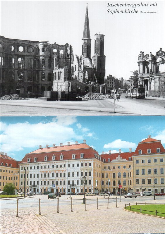 Кілька разів, розповідаючи про відвідані мною містах Німеччини, я застосовував висловлювання на кшталт «Він [місто] займає особливе місце в моїх спогадах ...» або тому подібні. Але зараз мова піде про Дрездені, і ось тут цей мовний зворот - не просто для більшого ефекту. По-перше, Дрезден - перше місто в Німеччині в моєму досвіді подорожей, отриманому під час поїздки влітку 2008 року. По-друге, саме тут я вперше по-справжньому відчув, ніж була для цієї країни Друга світова війна. Тому для основи розповіді в якості ілюстрацій використовую скани з книги, в якій зіставлені фотографії деяких місць Дрездена в лютому 1945 року (після жахливої бомбардування) і в 2004 році. Зараз, завдяки безперервному процесу реставрації, там стає все краще і краще.