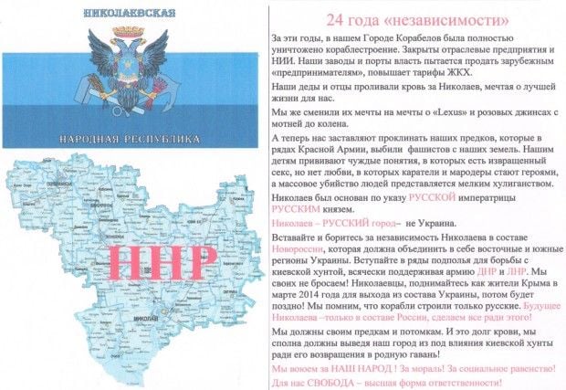У липні-серпні вони розробили і виготовляли сепаратистські листівки, які закликали до створення в Миколаєві і області "нового державного утворення у складі" Новоросії "та Російської Федерації".