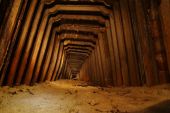 Періодично траплялися укріплені ділянки штольні - в тих місцях, де вона перетинала піщані породи. Деякі з цих укріплень не витримали випробування часом і породою, і представляли собою сумне видовище - покручені залізобетон, що стирчать балки, визвірився піщаник на стелі, що загрожує завалити і без того звужену прохід остаточно. Раптово праворуч від основної штольні я помітив шкуродёр, що минає вправо. Пірнувши в нього, ми виявили новий штрек, з товстим шаром іржавої бруду на підлозі, зі збереженими рейками, і буквально горами пластилінових колод. Поплутавши в надрах гори, ми вперлися в Завальний тупик, після чого повернулися в основну штольню, яка, пряма як струна, вела нас все далі. Незабаром ми побачили штрек, що минає вправо, пішли за ним. Фон все зростав ... 300 .. 400 .. 700 .. В кінці цього довгого штреку, також закінчується завалом, фон досяг 1300-сот. Вже якось язик не повертався називати це «фоном». Посидівши трохи, ми рушили назад, перевіривши по шляху нечисленні відгалуження. Дійшли до розвилки, продовжили рух по основній штольні. Проходу заважав справжній шкуродёр з завалів пластилінових колод, але це мене не зупинило, я, весь вимазавшись в радіоактивного бруду, проліз далі, потрапив у велику кімнату, з якої вели три завалених ходу. Все тут - підлогу, стіни, стелю, було з сирого піщанику. Дозиметр в цю кімнату я з собою не взяв. А дарма...