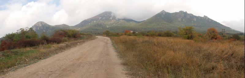 У Бештау ми пересіли на автобус до Желєзноводськ, а звідти вже рушили пішки в передгір'я. Гору Бештау на невеликій висоті окольцовивает дорога, яка так і називається - Бештаугорского Кільцева. Ось до неї-то нам і треба було дійти. В общем-то, якщо не розливатися думок по древу, то йшли ми непросто, весь час круто вгору, та ще й з рюкзаками. В самому кінці підйому Око показав мені вхід в одну з штолень. Вхід був наглухо забетонований, до того ж для чогось у вхід напхали велику кількість гілок. За принципом - «3 метри залізобетону, а для вірності - огорожа з гілок поставимо».