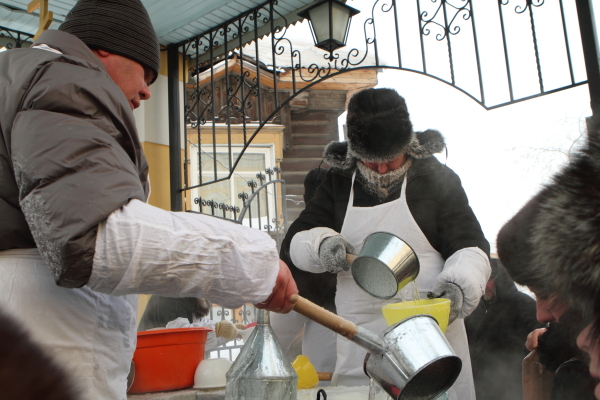 Роздача Хрещенській води: "І хто прагне, хай прийде, і хто хоче, хай воду життя бере дармо" (Об.22: 17). Фото: Дмитро Беркут