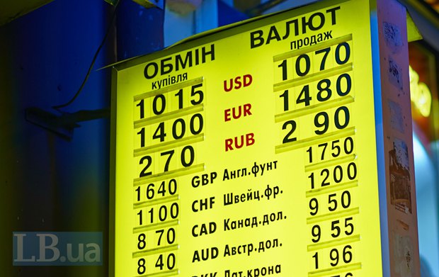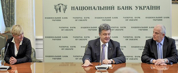 До президентських виборів навесні 2014 року, хоча курс гривні намагалися стабілізувати, об'єктивні обставини виявилися непереборними, і навіть програма з МВФ не змогла нівелювати негатив: гривня ослабла з 7,99 грн / долар в 2013 році до 11-12 грн / долар напередодні виборів. Коли ж вибори пройшли і політичний ризик знизився, важким тягарем залишався фактор катастрофічного для України падіння цін на сировинні товари, закриття російського ринку і ескалація воєнних дій на Донбасі. Нацбанк дуже обережно підвищував облікову ставку (з 9,5% в травні до 12,5%, а потім до 14% в листопаді), але активно продавав валюту з резервів (в тому числі «Нафтогазу», див. Таблицю 2), і утримував офіційний курс.