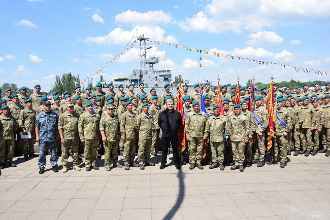 Після закінчення церемонії морпіхи в чорних беретах сфотографувалися з Степаном Полторак і Віктором Муженко.