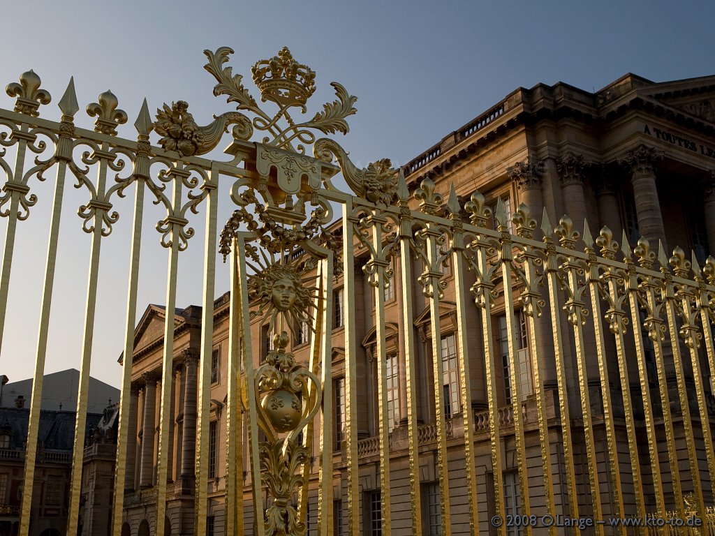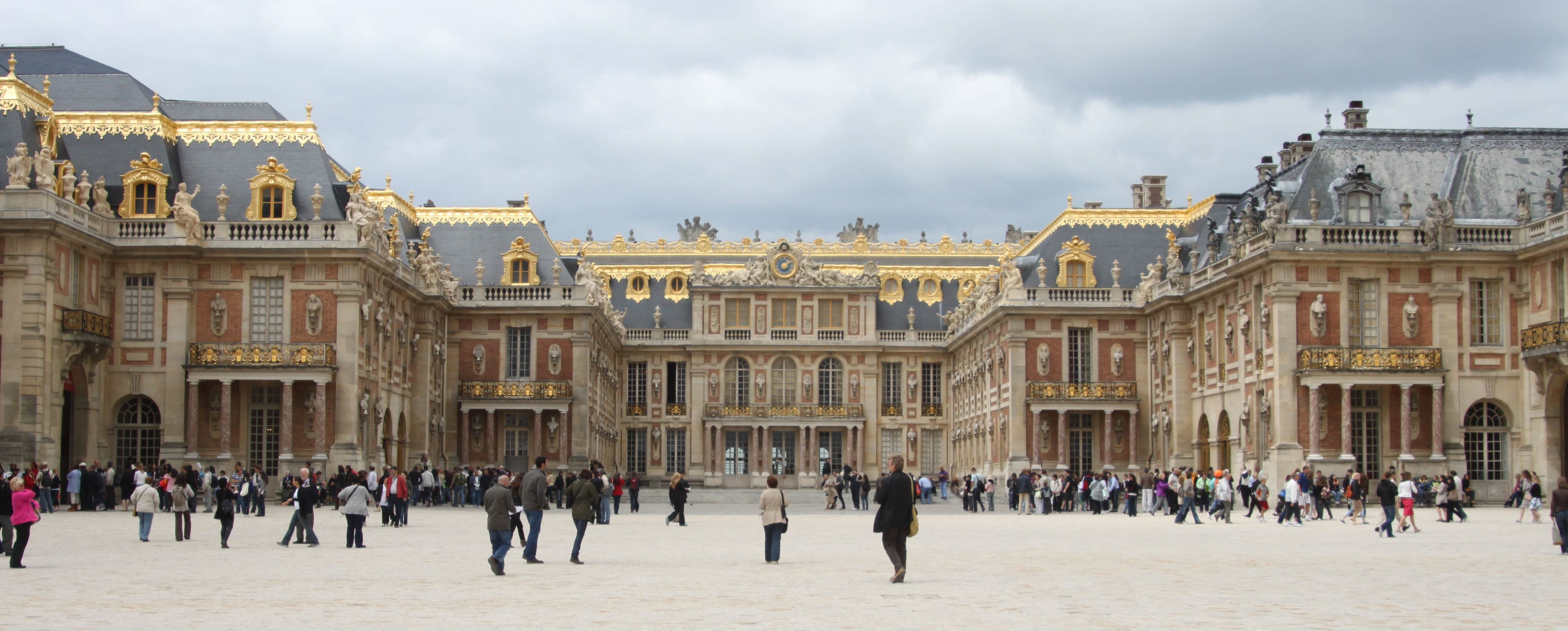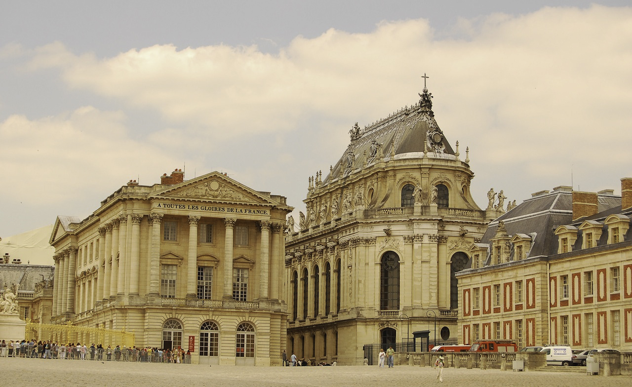 Головний палацовий комплекс (Chateau de Versailles) був побудований в 17-му столітті королем Людовіком XIV, який хотів перебратися сюди з небезпечного Парижа. Розкішні кімнати багато прикрашені мармуром, оксамитом і дерев'яним різьбленням. Головні пам'ятки тут - Королівська каплиця, Салон Венери, Салон Апполона і Зал Дзеркал. Оформлення парадних залів було присвячено грецьким богам. Салон Аполлона був спочатку трону залом Людовика. Зал Дзеркал містить 17 величезних дзеркал, що відображають високі арочні вікна і кришталеві канделябри.