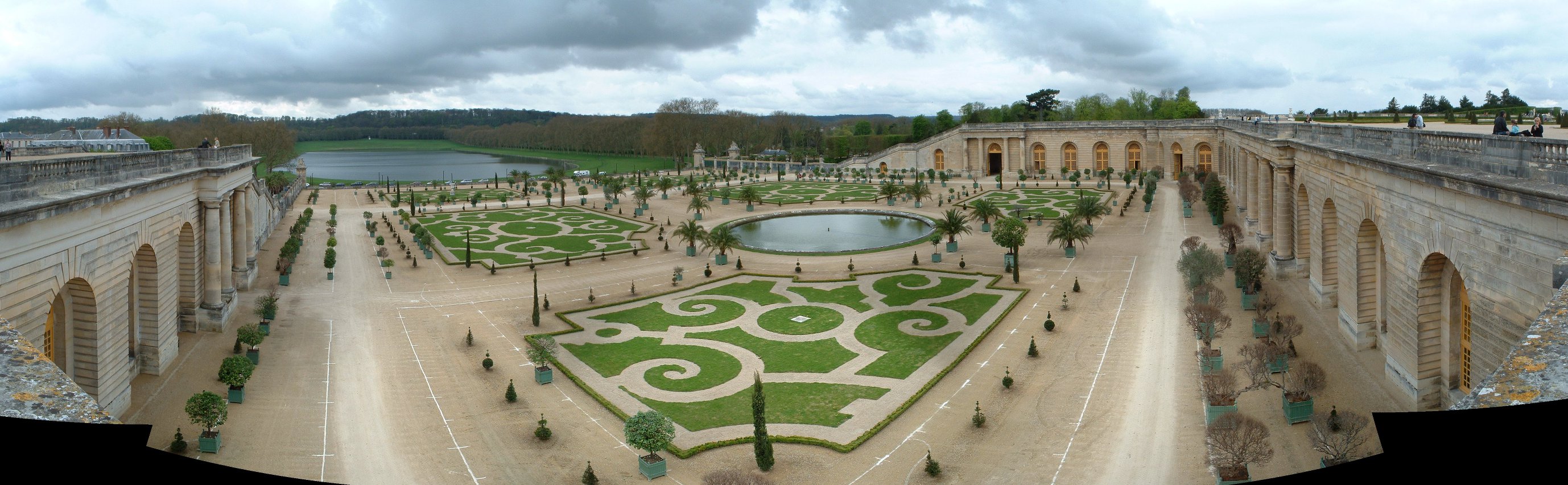 Парки Версаля розкінуліся на площади в 101 гектар. Тут безліч оглядових майданчиків, алей і променадів, є навіть свій Великий канал, а вірніше, ціла система каналів, яку назвали 'маленькою Венецією ". Сам Версальський палац теж вражає своїми розмірами: довжина його паркового фасаду становить 640 метрів, розташована в центрі Дзеркальна галерея має 73 метри в довжину.