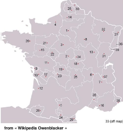 У свою чергу 22 регіону Франції європейської частини Франції поділяються на департаменти.