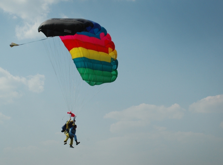 Допомогти з організацією стрибка Олексію Миколайовичу пообіцяв друг, зв'язавшись з інструкторами в Моспіно. Кілька днів Міхєєв очікував дзвінка, а потім не витримав, сів на «великий» - і поїхав на аеродром. Ясна річ, одноногий дідусь на велосипеді, що жадає самостійно стрибнути з парашутом, спершу кинув інструкторів в шок. Проте, Олексію Миколайовичу дозволили стрибнути тільки в тандемі. І вмовили. У 85 Міхєєв знову, як колись в молодості, летів з небес на землю.