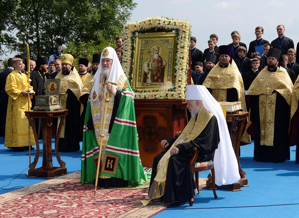 Патріарх Кирило і митрополит Володимир під час святкового молебню на Володимирській гірці. Київ, 2013 год / vera.foma.in.ua