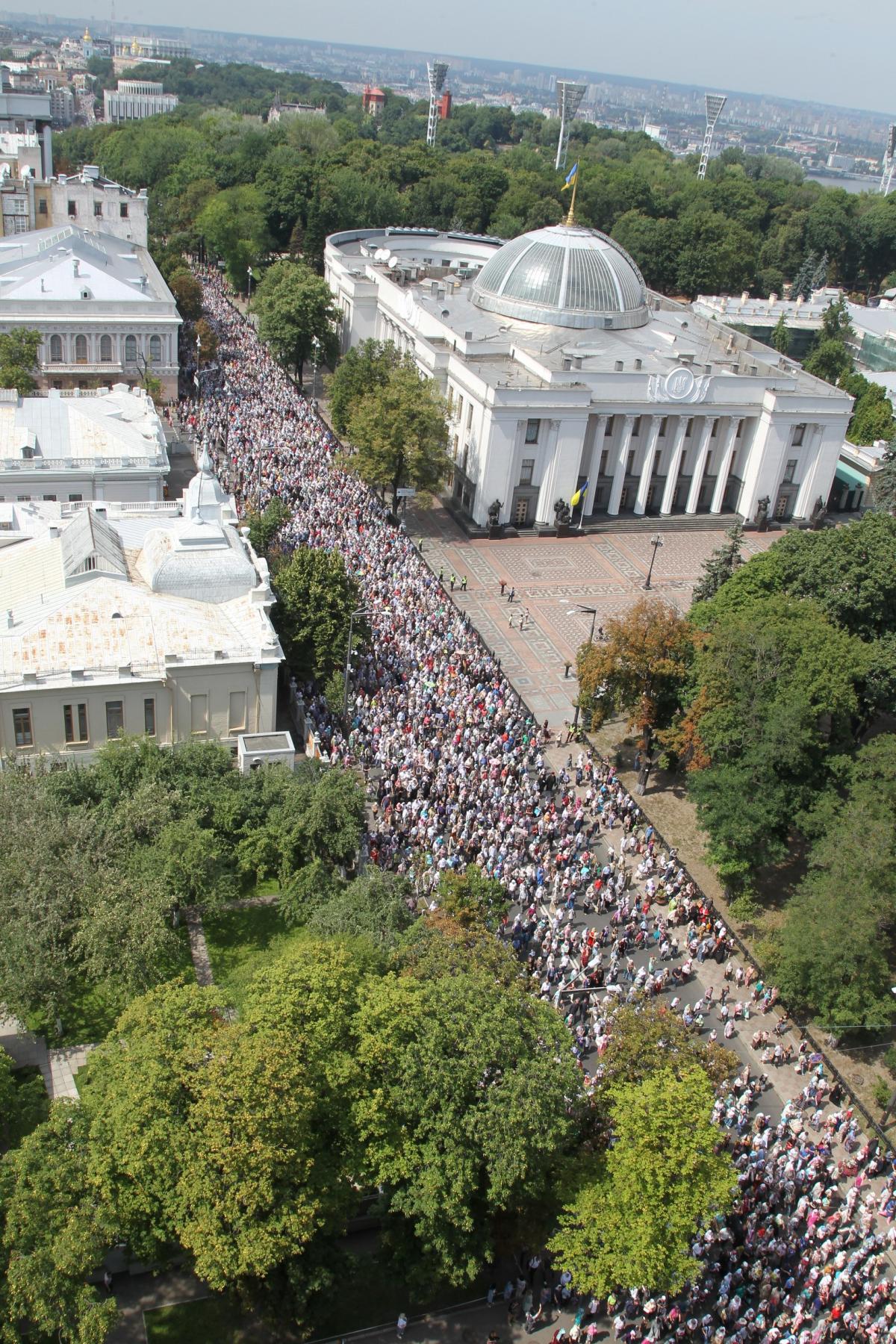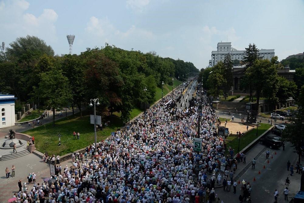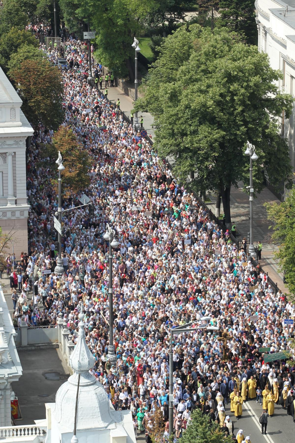 А 27 липня прочани об'єдналися в Києві на Володимирській Гірці, щоб разом піднести хвалу Господу і помолитися про Божу милість для нашого народу. Всього в молебні на Володимирській гірці та хресній ході в Києво-Печерську лавру взяло участь понад 80 тисяч осіб.