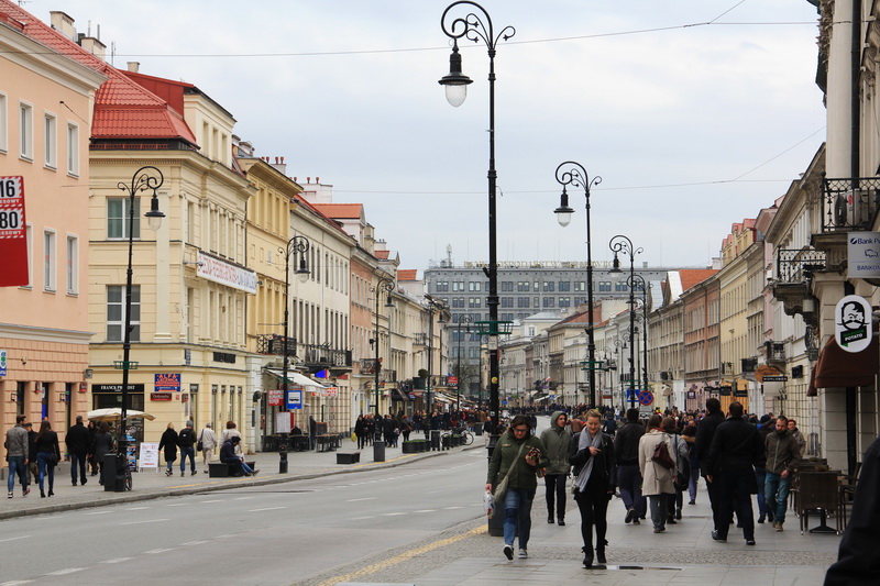 Від палацу Культури ми вийшли на одну з головних пішохідних вулиць Варшави - Краківське передмістя. На цій вулиці знаходяться Варшавський університет, Президентський палац, палац Радзивіллів з кінним пам'ятником князю Юзефу Понятовскому перед ним, костел Святого Хреста, в одну з колон якого вмурована урна з серцем Фредеріка Шопена. Згідно із заповітом великого композитора, тіло його поховано у Франції, на кладовищі Пер-Лашез, а серце повернуто на батьківщину.