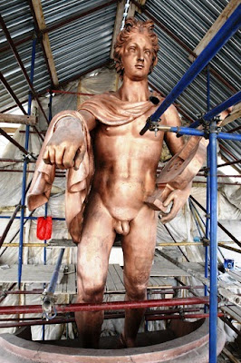 Основні роботи по нинішній реставрації квадриги Аполлона фахівцями «Невісс-комплекс» почалися 29 березня 2010 року після узгодження з компанією "Реставратор-М" і уточнення фактичних розмірів по скульптурі. Дивно, що реставратори не помітили ніяких слідів кріплення фігового листка на самій скульптурі Аполлона і вважали за краще аналог з Петергофа, хоча в тому ж Павловську Аполлон стоїть без всякого фігового листка! Складається враження, що наказ прикрити чоловічу гідність Аполлона на Великому театрі був спущений звідкись зверху, як свого часу кілька римських пап намагалися прикрити «непристойну» наготу «Страшного суду» Мікеланджело, або Філіп II Іспанський захотів прикрити мармурове розп'яття Христа роботи Бенвенуто Челліні власним носовою хусткою, але то були священні зображення. А у нас в Росії лише в XVII в. цар Олексій Михайлович на вимогу патріарха Никона наказував одягнутися в одяг привезені з Заходу голі скульптури язичницьких богів, і ось тепер історія, схоже, повторюється ...