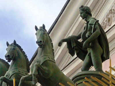 Квадрига Аполлона для фасаду Великого Александрінського театру в Санкт-Петербурзі (скульптор С.С. Піменов, 1820-1830 рр. Мідь, діфовка)