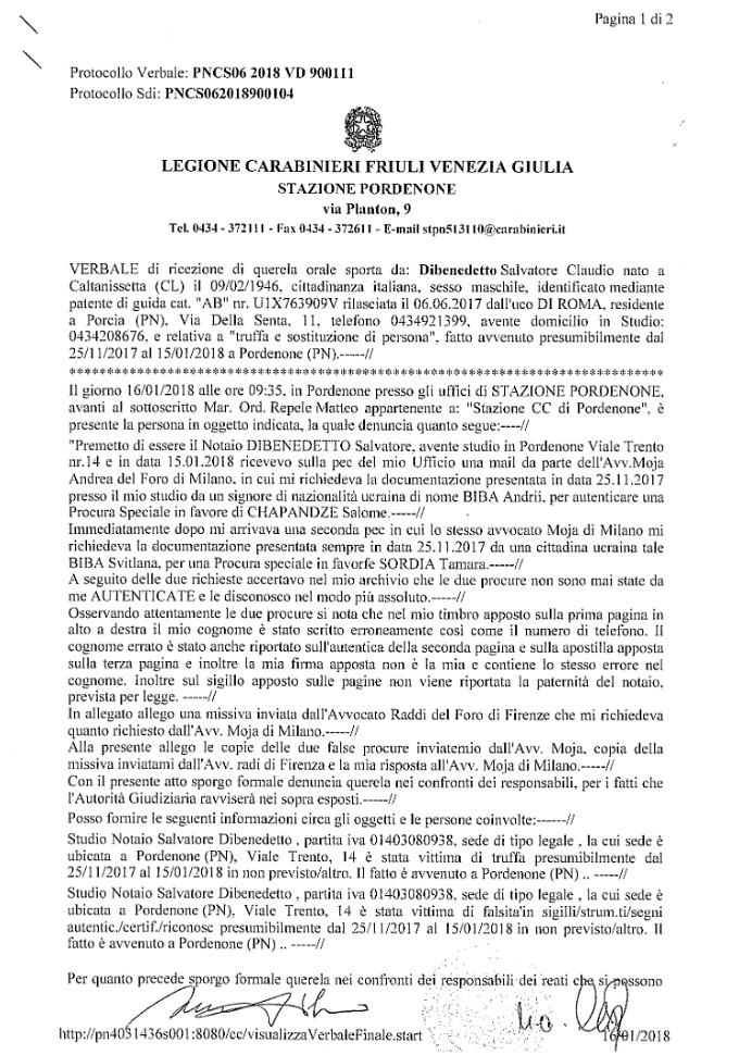 Переоформити майно А.Біба шахраям дозволила підроблена довіреність від італійського нотаріуса Сальваторе Клаудіо. Останній вже написав заяву в поліцію з цього приводу