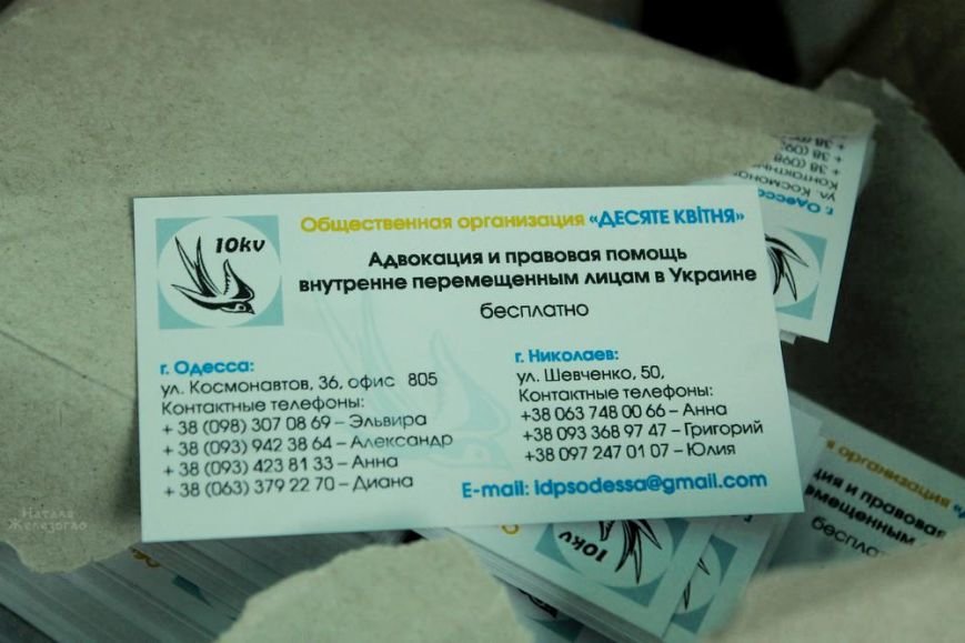 Агресор за допомогою війни на Сході нашої країни і анексії АР Крим не тільки тимчасово позбавив Україну контролю над своїми територіями - він позбавив життя тисячі українців, зламав тисячі доль, позбавив даху тисячі тих самих жителів Донбасу, яких нібито поривався захищати. Тепер вони змушені поневірятися, позбавлені будинку, роботи, звичного кола знайомих і друзів, отримавши новий статус «внутрішні переселенці». За статистикою більше 35 тисяч вимушених переселенців переїхали в Одеську область. Хтось перечікує війну, обстріли, рятує своїх дітей від жахів бойових дій. Хтось усвідомлює, що навряд чи вже повернеться - повертатися вже і нікуди. Ці люди потрапили в незнайоме середовище, в чужу громаду, не маючи при собі особливих заощаджень, не знаючи тут нікого. Їх життя почалося з чистого аркуша. І в такій непростій ситуації надзвичайно важлива підтримка держави, місцевих жителів, волонтерів, благодійних фондів, громадських організацій, міжнародних донорів. А скільки проблем виникає! Проблем виникає багато. В місяць близько 80 звернень отримують співробітники Десятого квітня, які надають безоплатну правову допомогу. Допомогти їм вирішити проблеми і інтегруватися в суспільство - такі завдання зокрема ставлять перед собою співробітники центрів допомоги переселенців. Сьогодні про допомогу внутрішньо переміщеним особам розповість Ольга Ткаченко - координатор проекту надання безоплатної правової допомоги та інших видів захисту внутрішньо переміщеним особам, співробітник громадської організації «10 квітня».